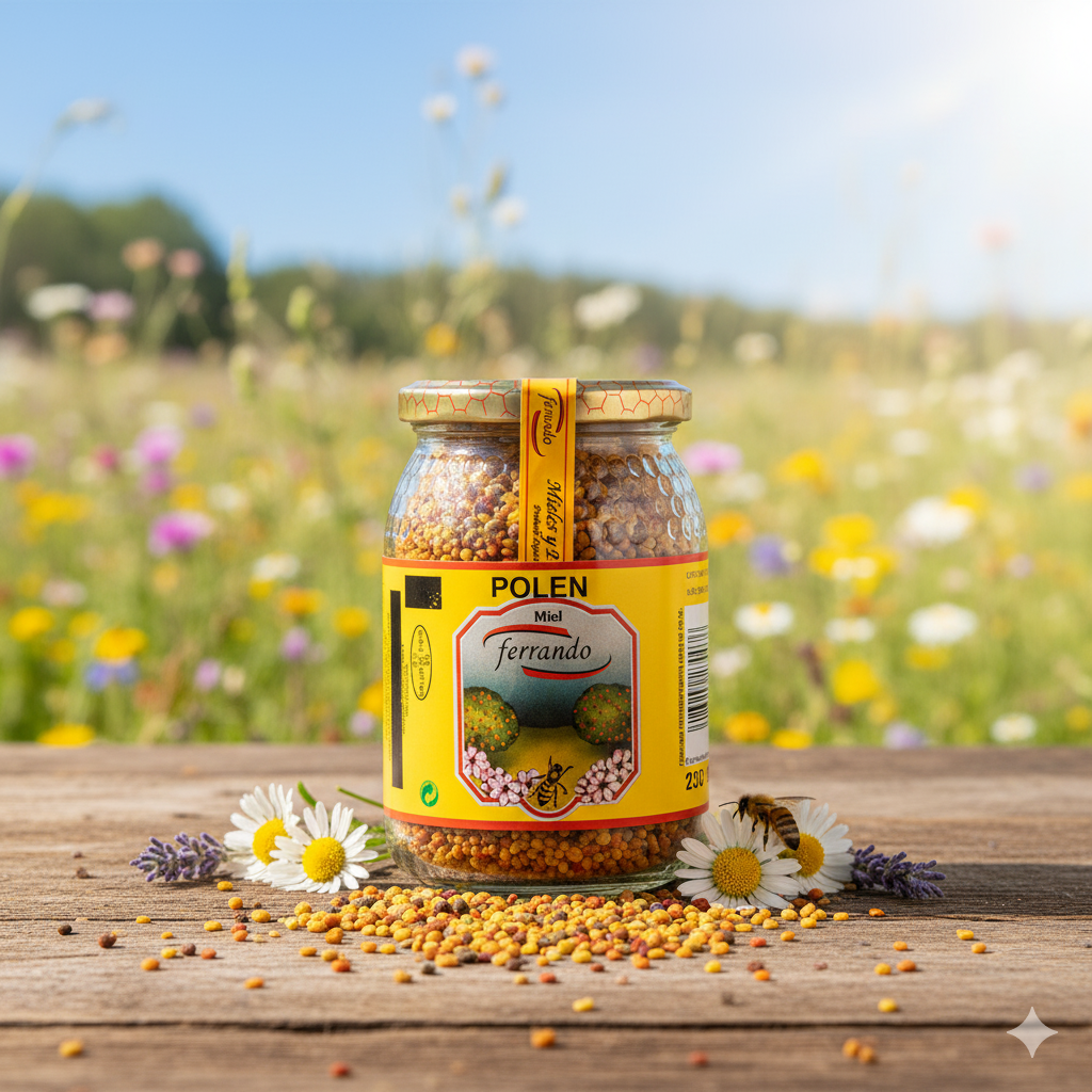 El polen constituye el elemento masculino de la flor, es el polvillo que queda prendido de los dedos al tocar el cáliz de la flor, el cual es recogido por las abejas, al mismo tiempo que hace de elemento fecundante de las flores.